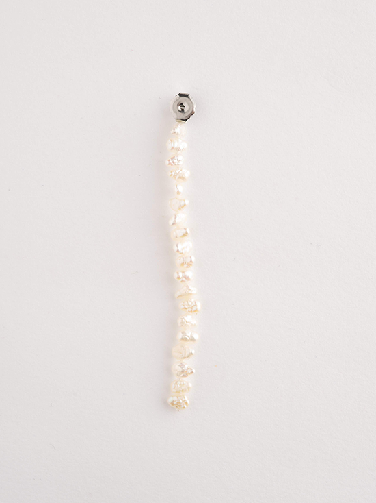 シュワっとした天然の淡水真珠のピアスです。キャッチ部分からもパールが揺れるので、着用した時には一本の真珠がまるで耳を通っている様に見えます。表面がポコポコとしている不思議な風合いの真珠が揺れる姿は顔周りが華やかになります。ポスト側だけをお手持ちのキャッチと組み合わせてシンプルにお使いいただいたり、キャッチ側をお手持ちのプチピアスと組み合わせて新たなデザインとしても色々なアレンジでお楽しみいただけます。金属部分はアレルギーがでにくいステンレス金具を使用しております。