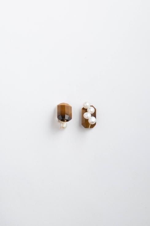 素材:タイガーアイ、淡水真珠、ステンレス(K18コーティング)