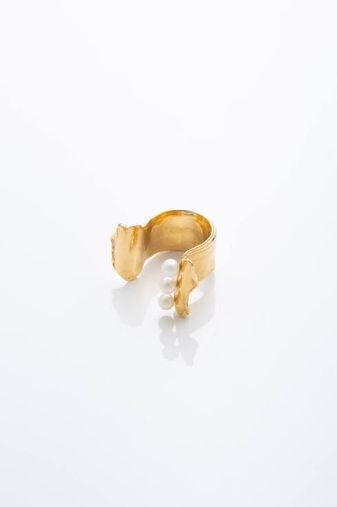 柔らかい蔦の様な曲線で形成されたリングは、ミツロウワックスという素材を使い蜜蝋ひき目という技法を使い1発で形を決めています。