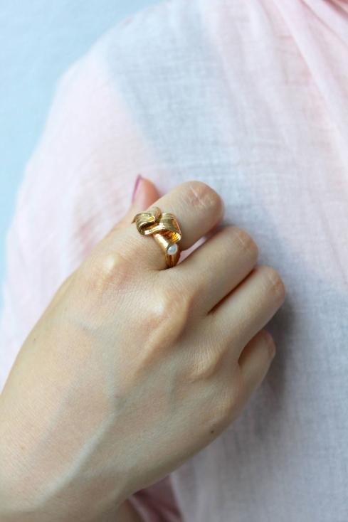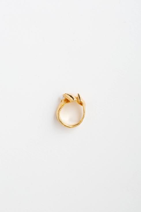 柔らかい蔦の様な曲線で形成されたリングは、ミツロウワックスという素材を使い蜜蝋ひき目という技法を使い1発で形を決めています。