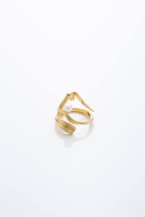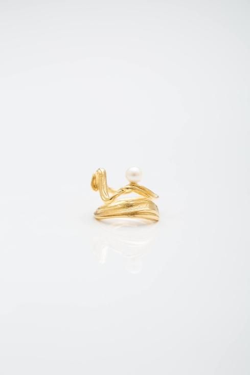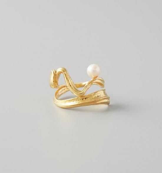 柔らかい蔦の様な曲線で形成されたリングは、ミツロウワックスという素材を使い蜜蝋ひき目という技法を使い1発で形を決めています。
