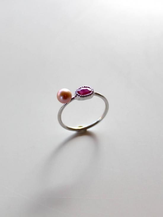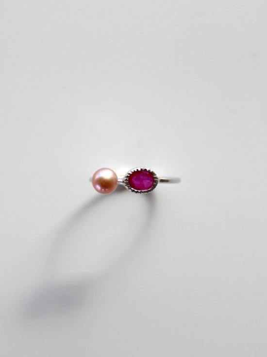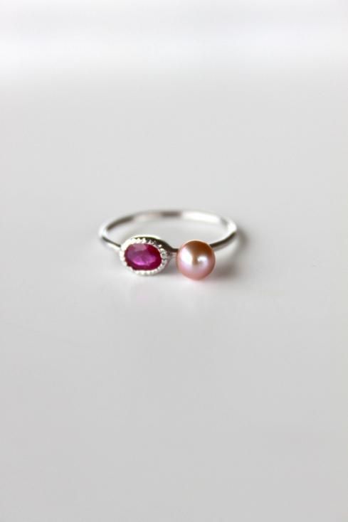 ルビーの赤とピンクの真珠は、小粒の可愛さと存在感のある装いに一役買います