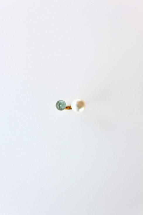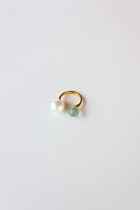 天然石とパールが華やかに輝くデザインで、真ん中が空いているフォークリングは一味違ったおしゃれを楽しめます。