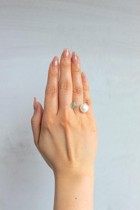 2本重ね付けで人とは違ったインパクトのあるパールリングスタイルに