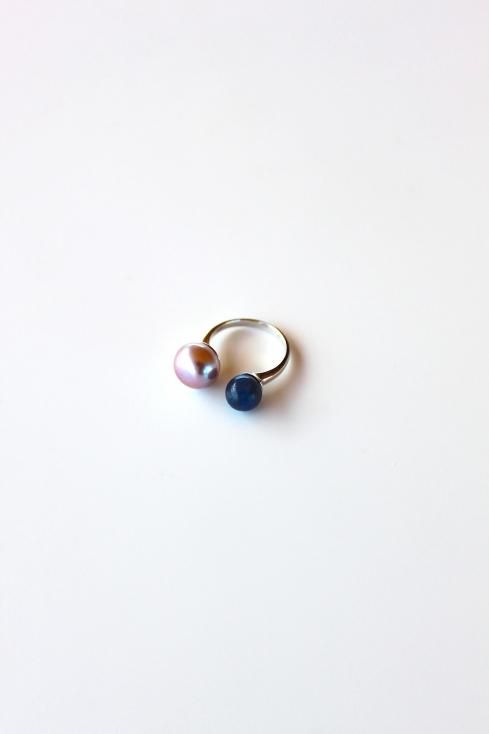 天然石とパールが華やかに輝くデザインで、真ん中が空いているフォークリングは一味違ったおしゃれを楽しめます。