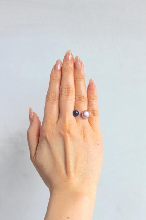 2本重ね付けで人とは違ったインパクトのあるパールリングスタイルに