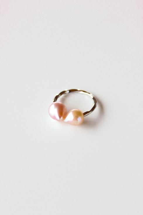 とんがりフォルムの淡水真珠を主役にした一点物のIcicle Ring